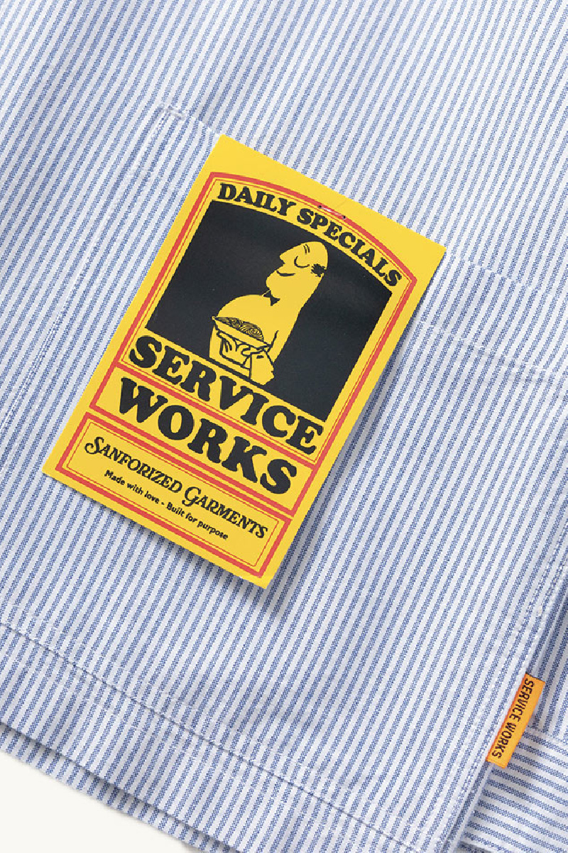 Chemise à rayures bleues, confectionnée en popeline de coton biologique, de la marque Service Works.