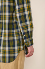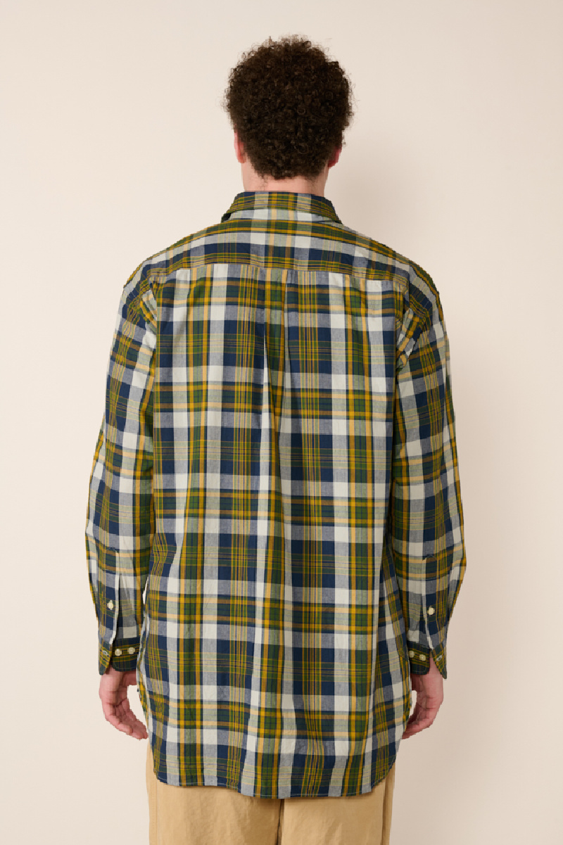 Son motif à carreaux vert, jaune et bleu s’inspire du tissu traditionnel indien Madras, réputé pour ses couleurs vives et son design à carreaux emblématique, offrant un style estival et élégant.