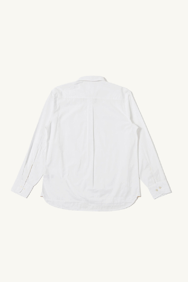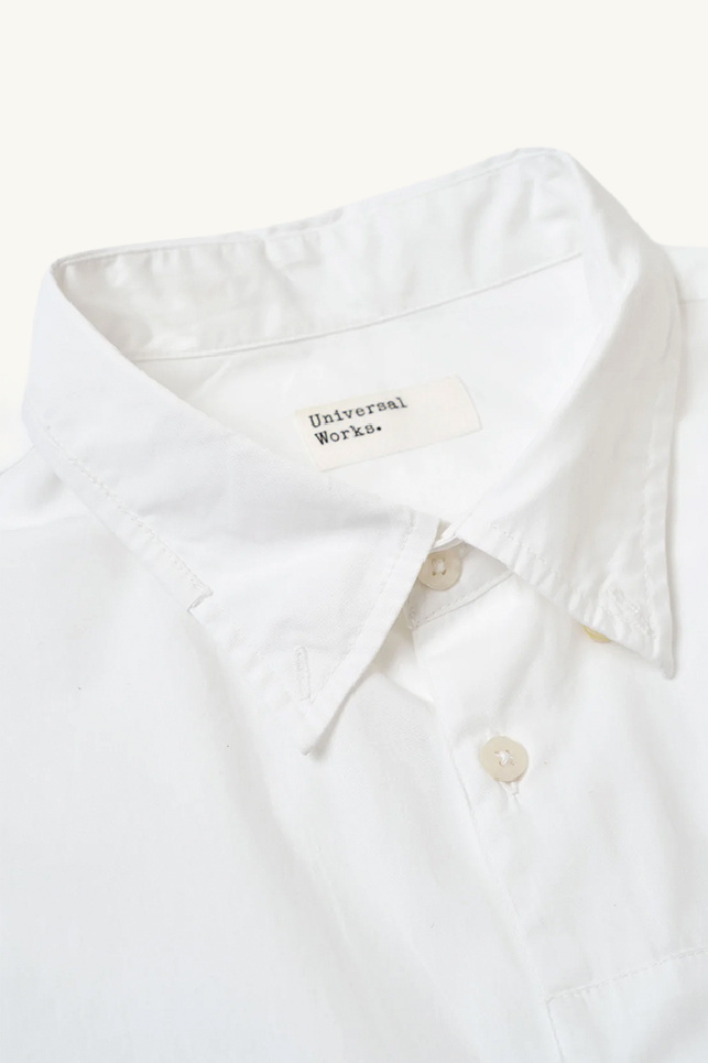 Chemise Patched Lazy Day confectionnée en popeline blanche avec patchworks, de la marque Universal Works.