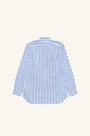 Elle offre une coupe droite avec un col classique pointu, un ourlet arrondi, une patte de boutonnage en nacre sur le devant et des poignets boutonnées.