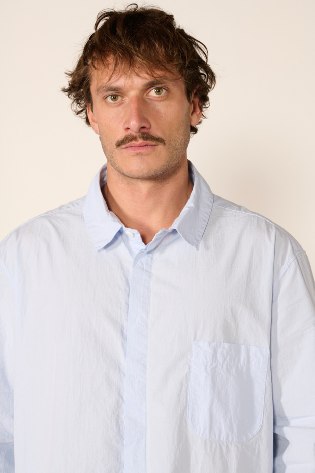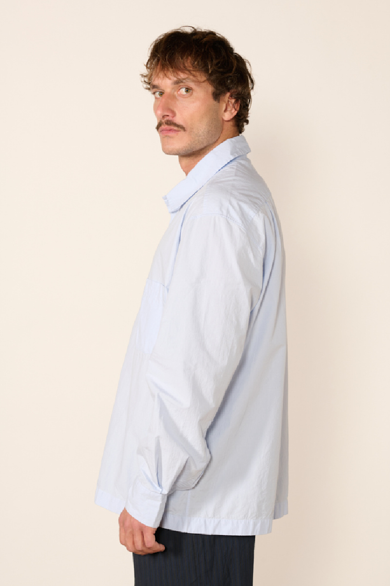 Surchemise micro-vichy confectionnée en crêpe coton bleu de la marque Bergfabel.