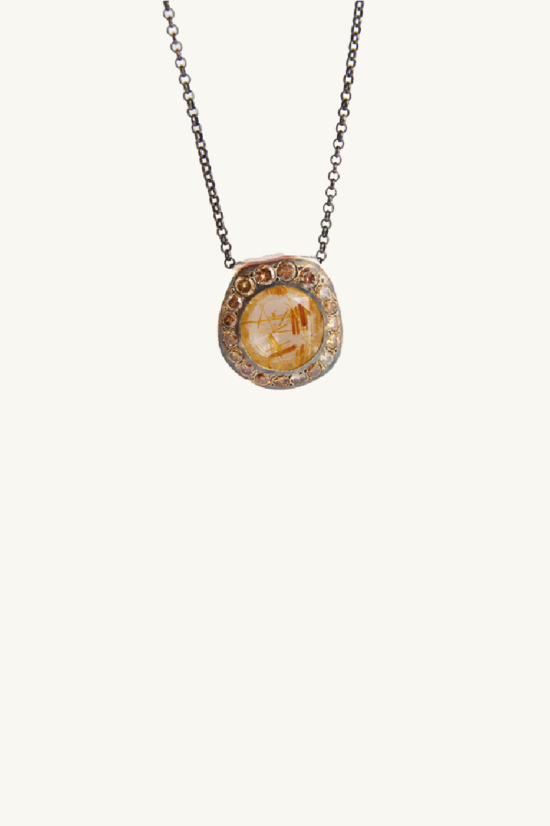 Collier en sterling silver, Golden rutilated quartz avec pendentif en diamants cognac Rosa Maria en argent sertie de diamants. Les bijoux de la marque Rosa Maria sont un mélange audacieux entre inspirations ethniques et esprit industriel brut.