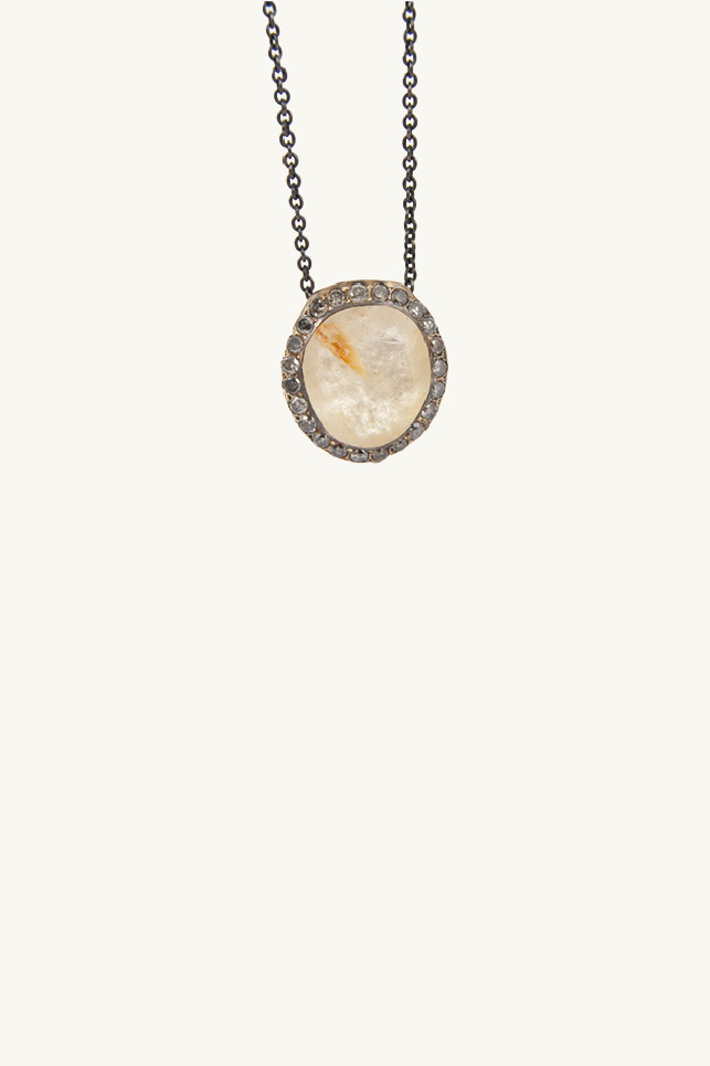 Collier en sterling silver, White rutilated quartz avec pendentif en diamants gris glacés Rosa Maria en argent sertie de diamants. Les bijoux de la marque Rosa Maria sont un mélange audacieux entre inspirations ethniques et esprit industriel brut.