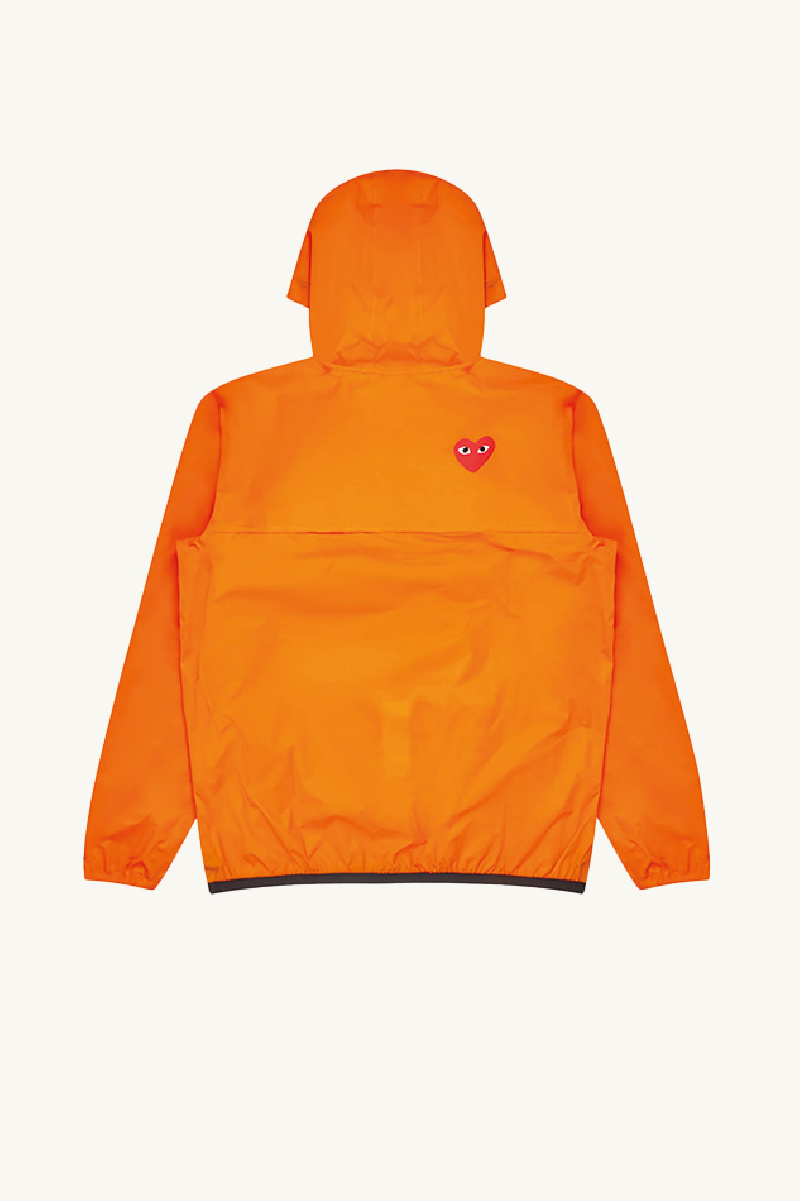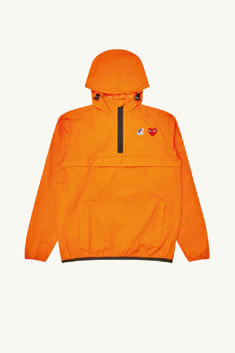 Collab K-WAY X Comme des Garçons PLAY, Coupe droite, demi-zip, cordons de serrage élastiques en bas et sur la capuche, poche zippée de rangement « pac-away »