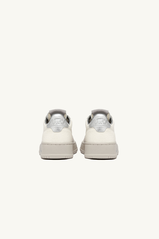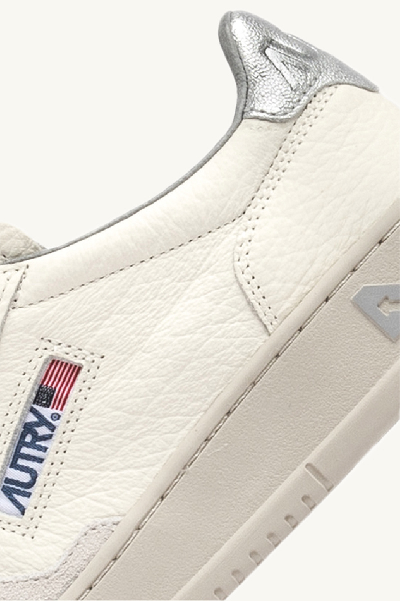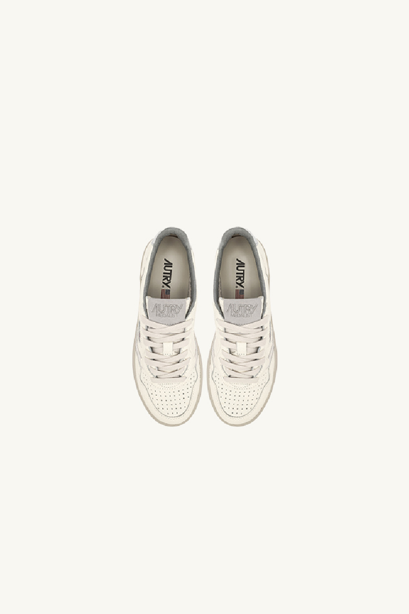 Paire de baskets AUTRY, Medalist low, blanche, en cuir grainé de couleur unie.
