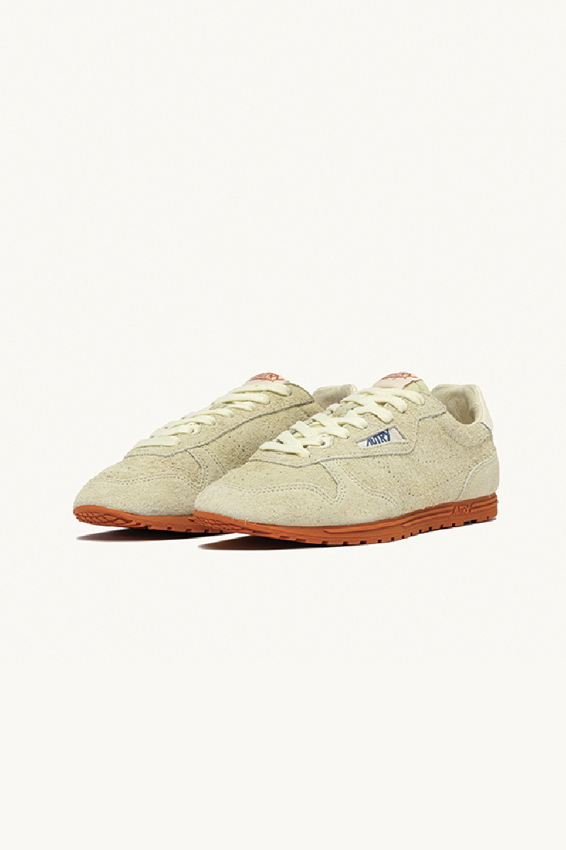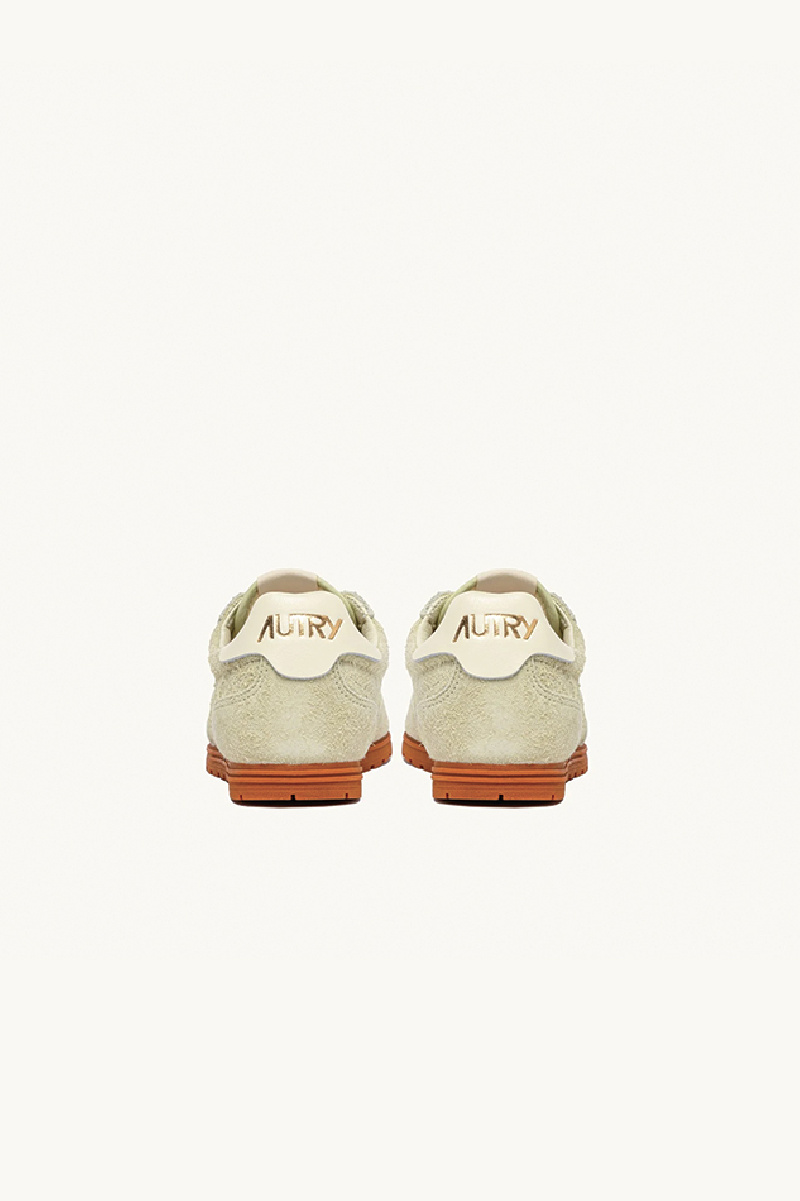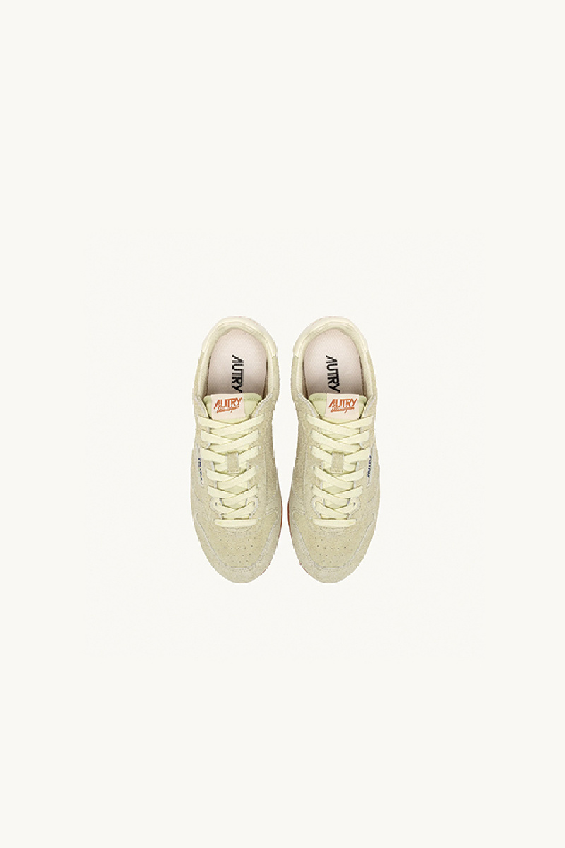 Baskets Wingspin en daim doux à effet « used » couleur Beurre, nouveauté de la marque Autry.