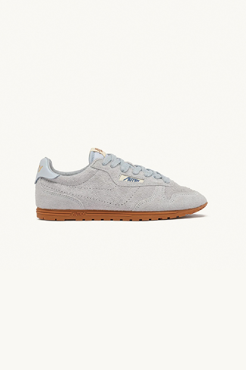 Baskets Wingspin en daim doux à effet « used » couleur Ice, nouveauté de la marque Autry.
