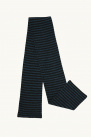 Ce foulard en laine d'agneau, à la fois doux et confortable, se distingue par ses rayures étroites et contrastées. Sa taille moyenne permet de l'enrouler facilement une ou deux fois autour du cou. Il est fabriqué à la main dans le sud-ouest de l'Écosse, dans une usine de tricotage qui existe depuis plus de 100 ans et qui est célèbre pour son savoir-faire, notamment dans la production du "Tammy" écossais, un type de béret traditionnel. Le foulard est teinté avec des colorants organiques certifiés GOTS (Global Organic Textile Standard).
