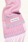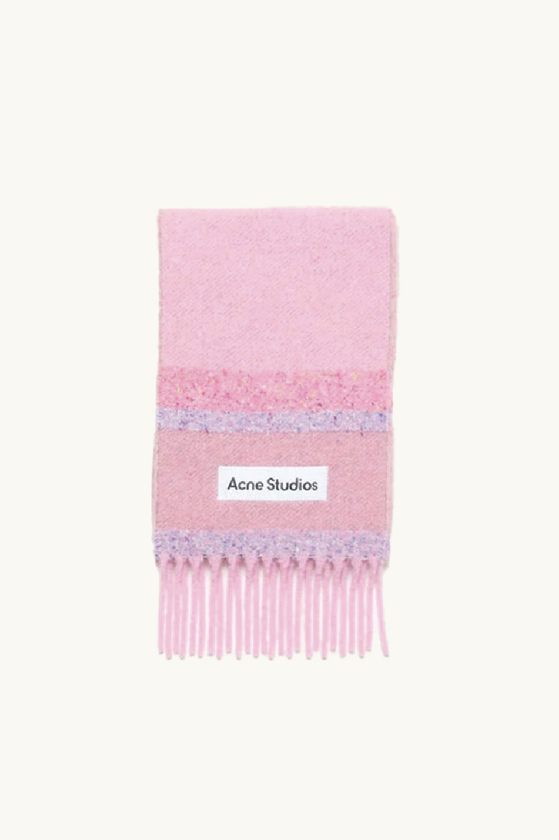 Écharpe Acne Studios, en alpaga et laine mélangés à carreaux, couleur rose, matière duveteuse, patch siglé avec logo "Acne Studios".