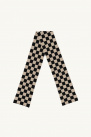 Petite écharpe tricotée à carreaux noir et beige confectionnée en laine d’agneau, de la marque Jo Gordon.