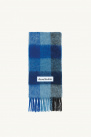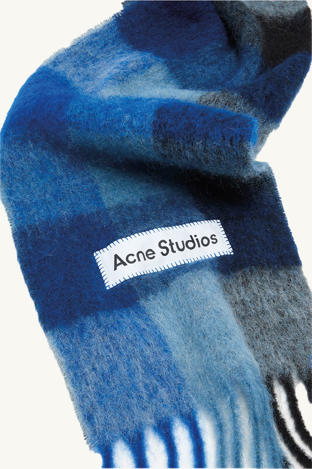 Écharpe Acne Studios, confectionnée dans un doux mélange de mohair et d'alpaga, à carreaux dans les tons bleu et noir.
