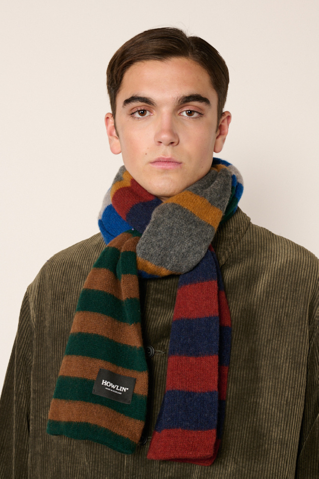 Écharpe rayée multicolore en laine d'agneau de la marque Howlin'.