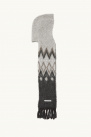 Elle présente un motif de saison accompagné de franges aux extrémités et d'une étiquette à logo en cuir.