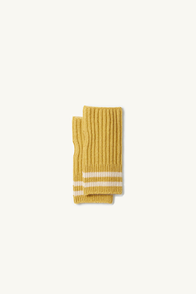 Mitaines tricotées jaunes confectionnées en mélange de laine et acrylique à bandes, de la marque Rototo.