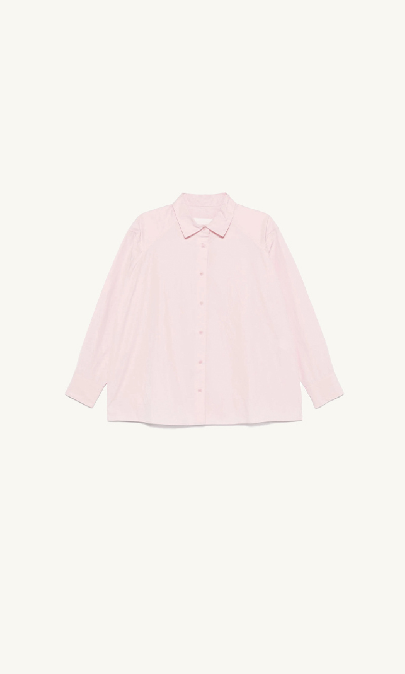 Chemise confectionnée en coton paper cot rose claire, matière signature à l’aspect froissé de la marque Casey Casey.