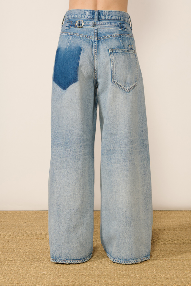 Jean Shibuya, confectionné a partir de denim de coton bleu, de la marque Needby Vintage.