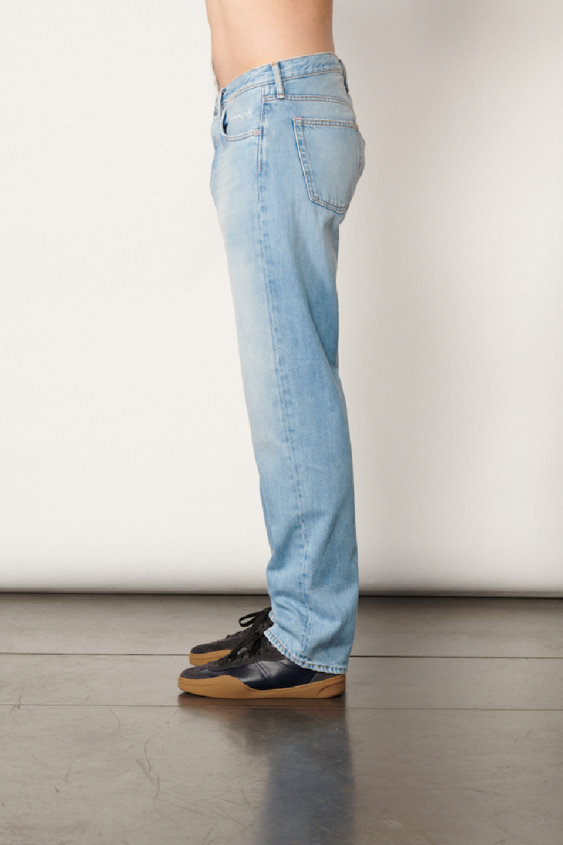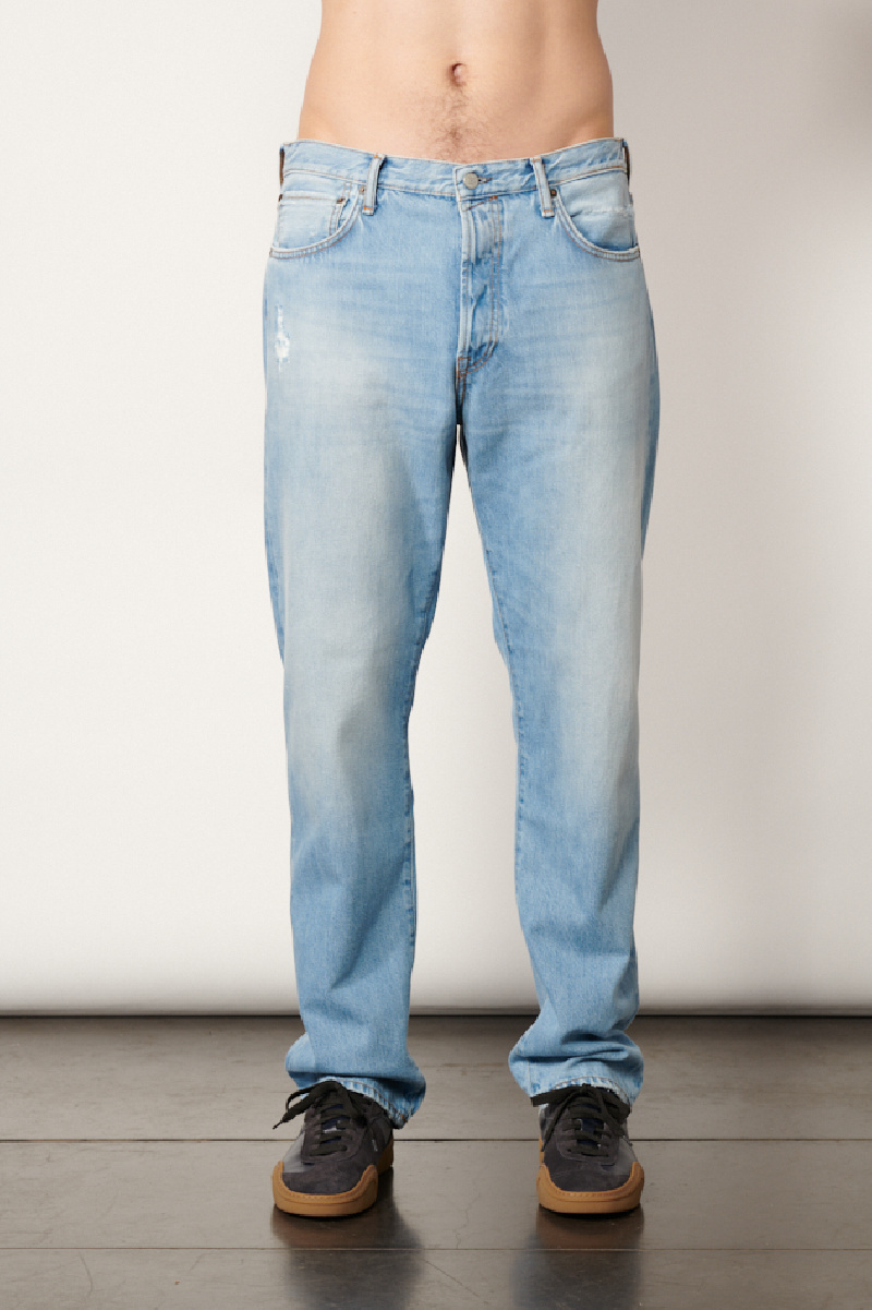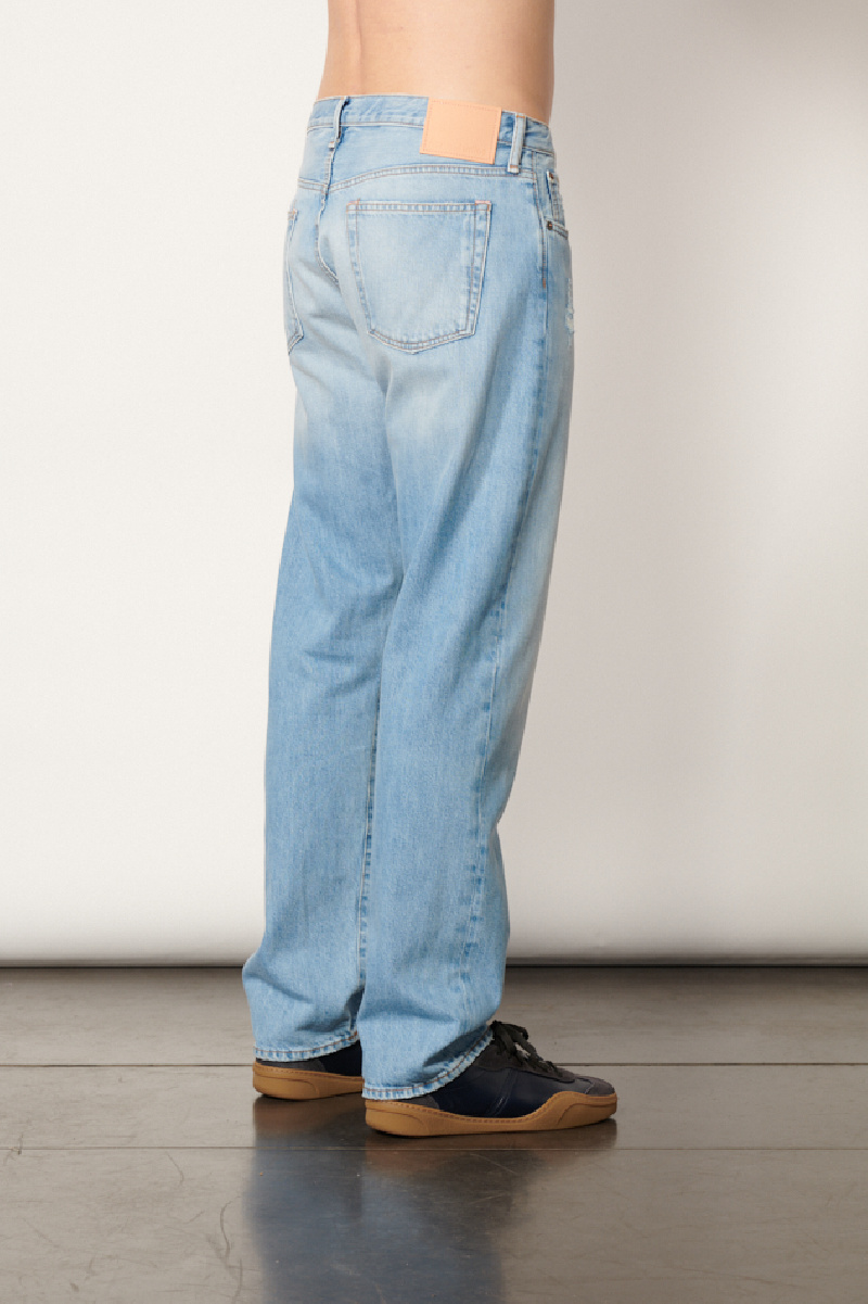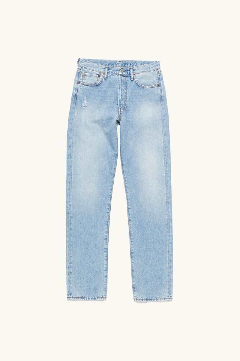 Le jean 1996 de la marque Acne Studios, conçu en denim non extensible light blue, offre une coupe classique et intemporelle.
