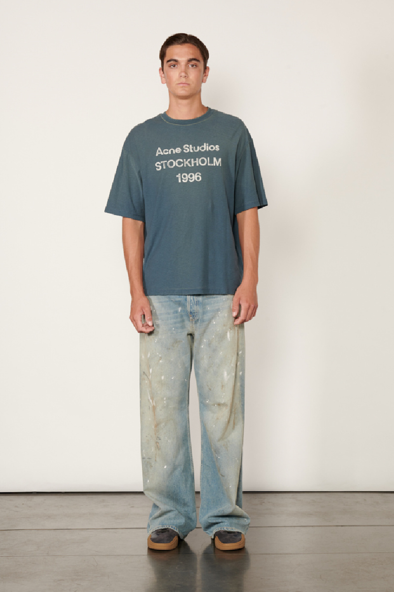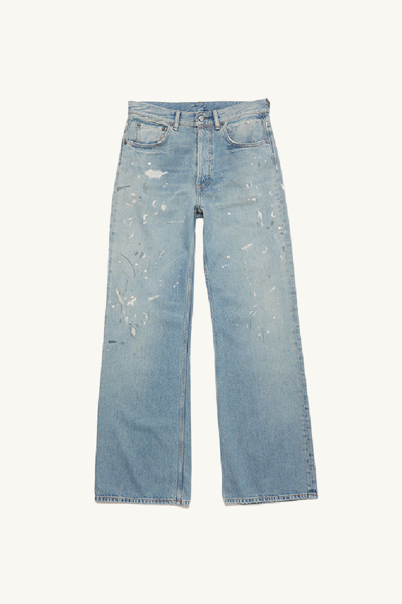 Jean Acne Studios confectionné en coton bio recyclé bleu clair avec des détails teintés et peints,