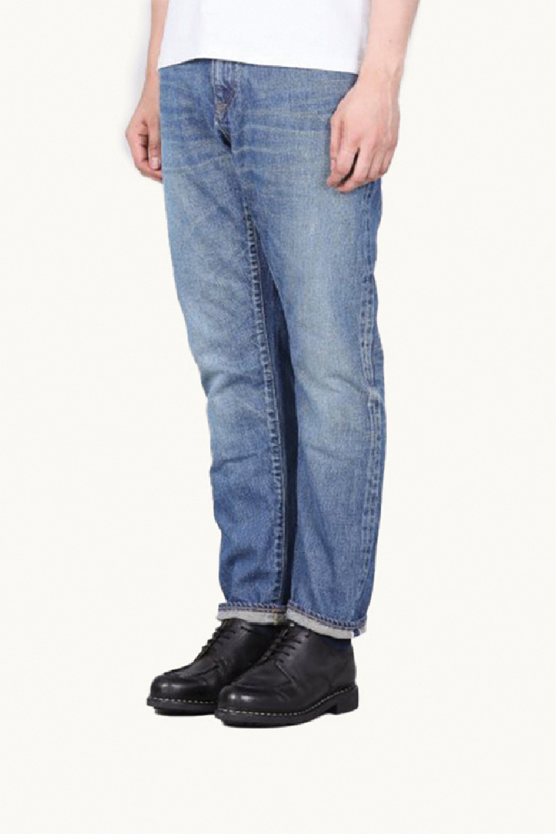 La coupe droite, légèrement fuselée, s’inscrit dans une esthétique intemporelle. Le traitement "Aging Wash" révèle une teinte indigo vibrante et un délavage authentique, évoquant l’usure naturelle du coton au fil du temps.
