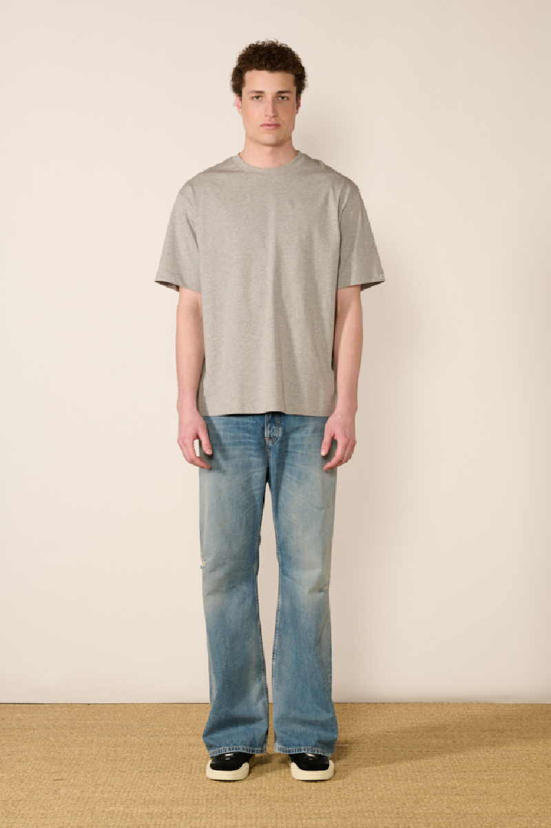 Son design se distingue par un effet vintage travaillé, avec un délavage soigné et des zones effilochées pour un look usé et authentique.