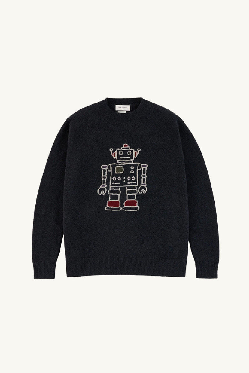Il offre une coupe décontractée arborant un robot sur la poitrine, et est doté de poignets, d'un col rond et d'un ourlet côtelés.