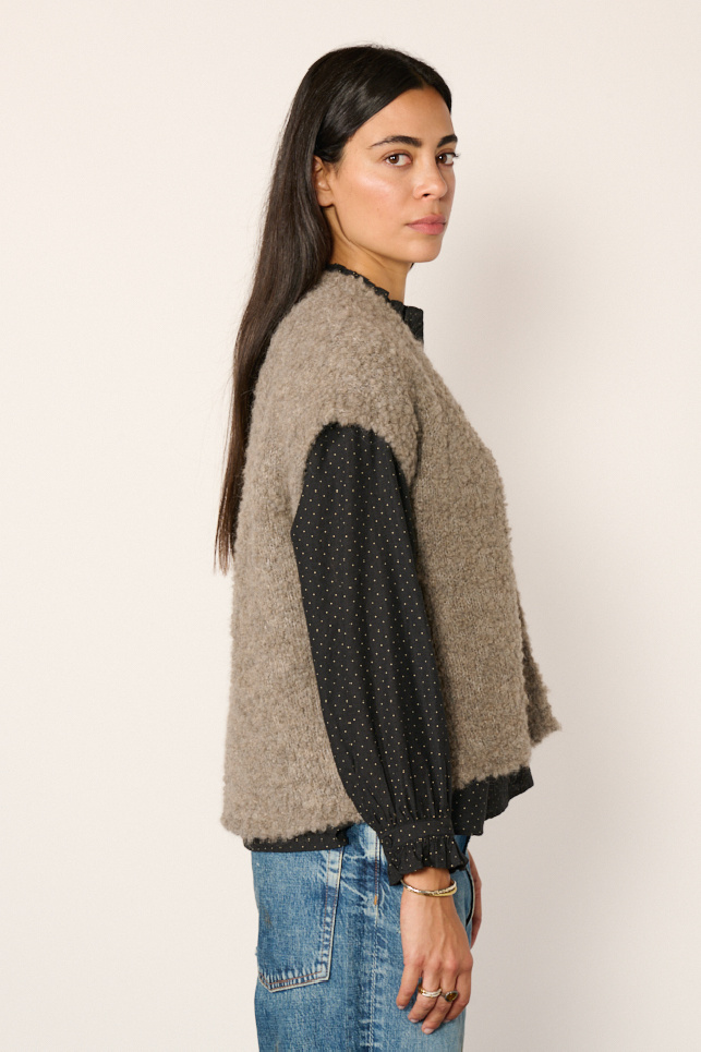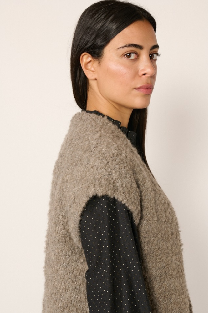 Gilet sans manches confectionné en alpaga et laine couleur taupe de la marque Maison de Soil.