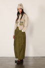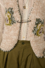 Elle offre une coupe ajustée arborant des broderies florales et une fermeture à l’aide d’une épingle en métal.