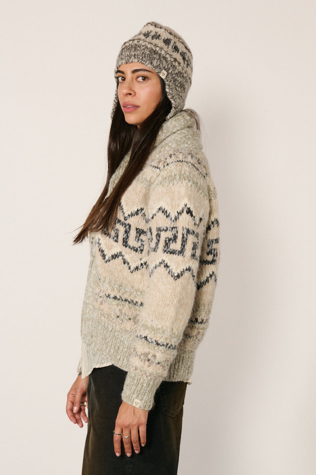 Cardigan Dublin tricoté main en laine épaisse grise, de la marque Bsbee.