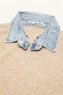 Il offre un design superposé à une chemise en denim de coton bleu used, une coupe droite longueur hanches, des finitions côtelées pour un rendu soigné et un rivet griffé en métal à l’arrière du col.