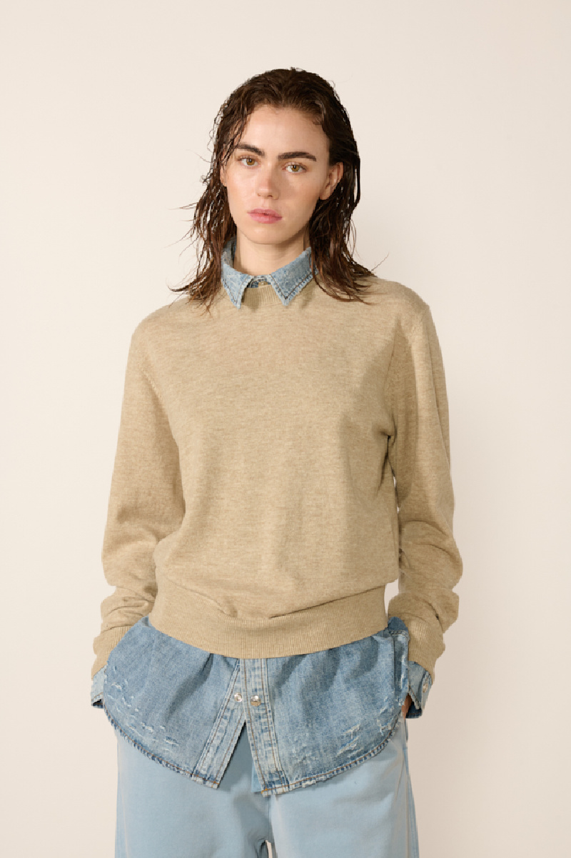 Pull ras du cou en laine beige, de la marque Acne Studios.