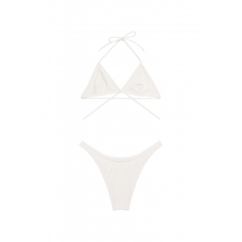 Maillot Lido, couleur blanc ivoire, côtelé, 2 pièces, liens à lanières, bretelles croisées, ajustement du buste, culotte de bikini taille haute et échancré, matière lycra très douce