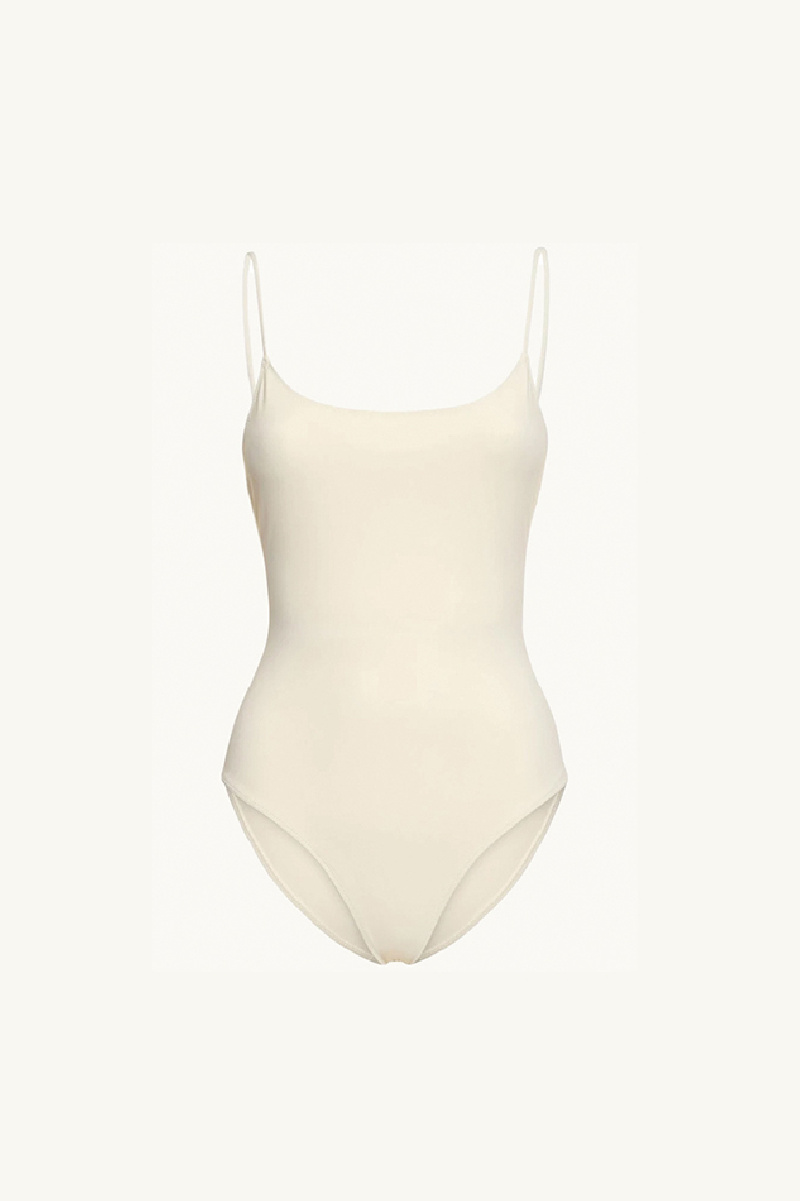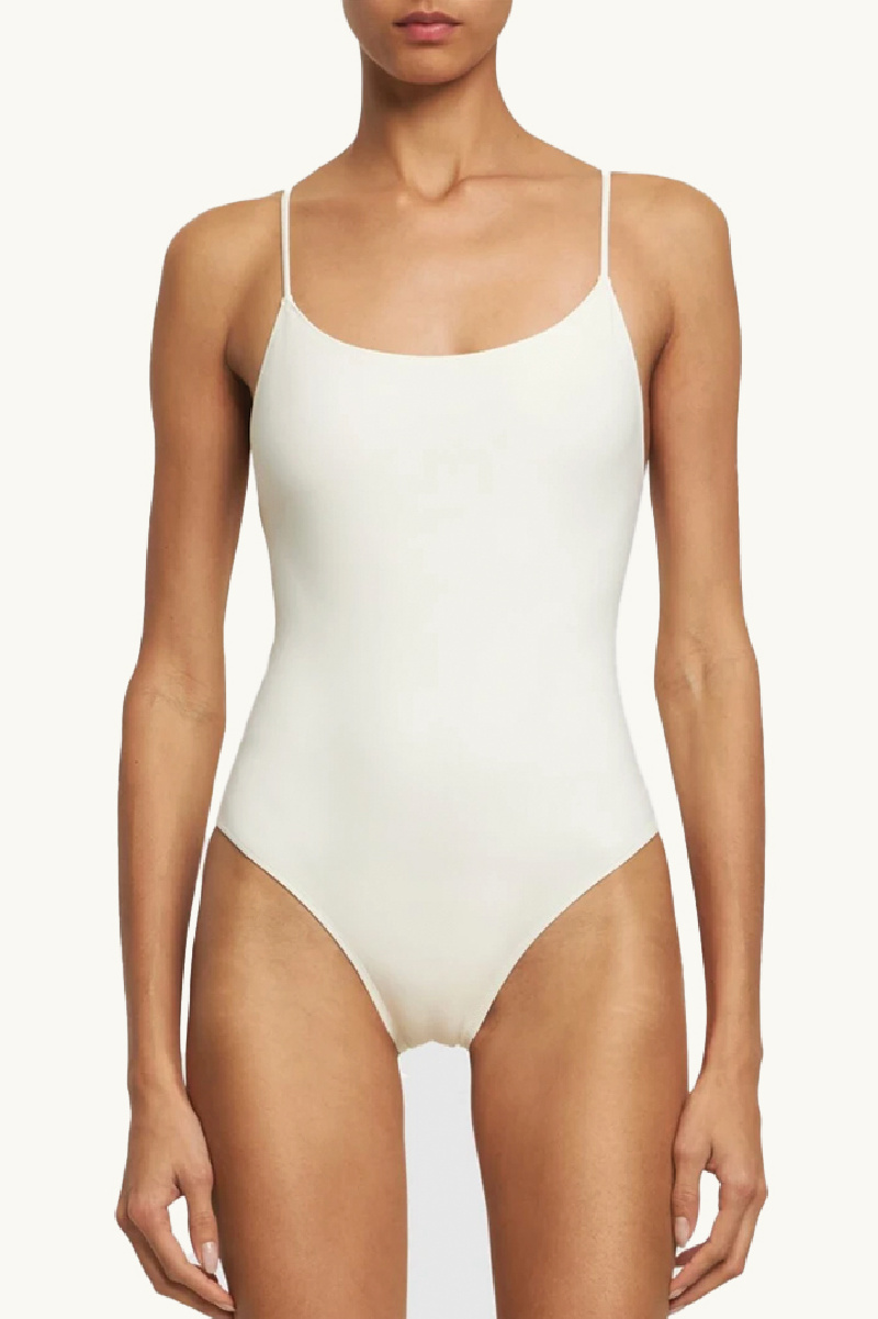 Maillot de bain une pièce Lido, couleur Ivoire, encolure droite classique, dos à coupe basse, bas du maillot peu échancré, coupe simple.