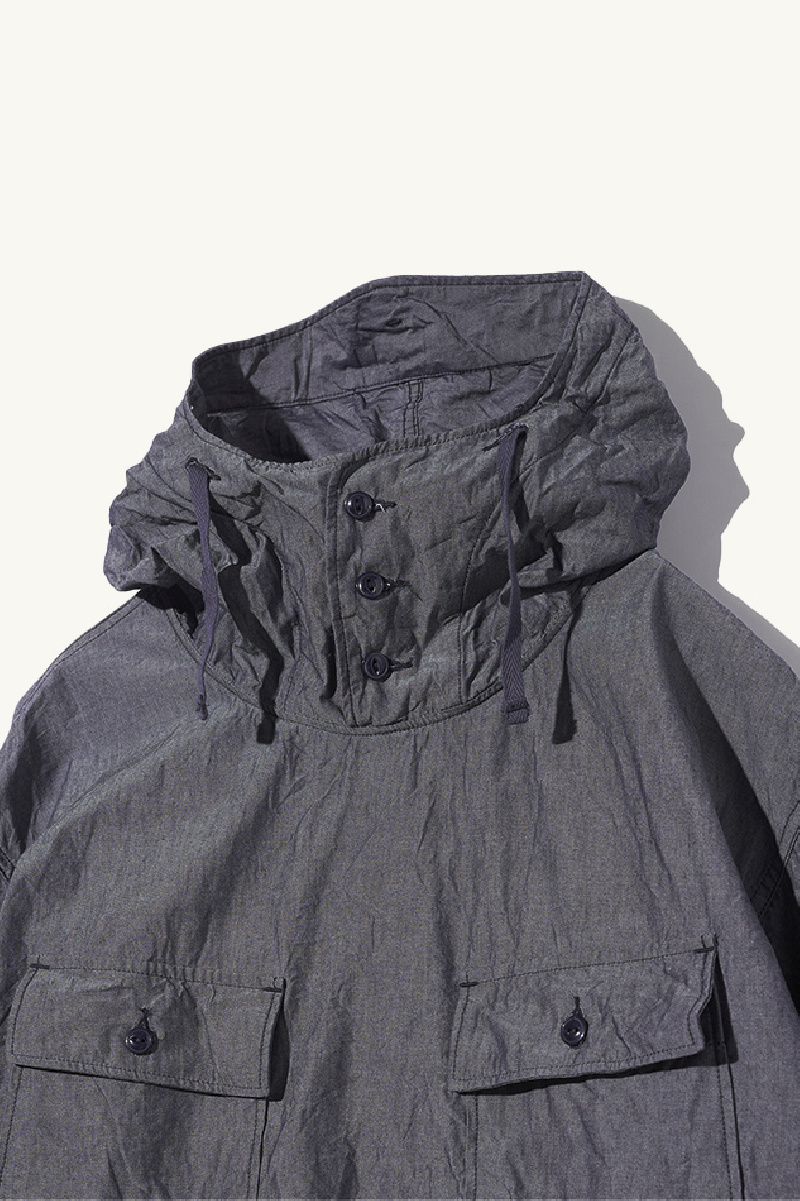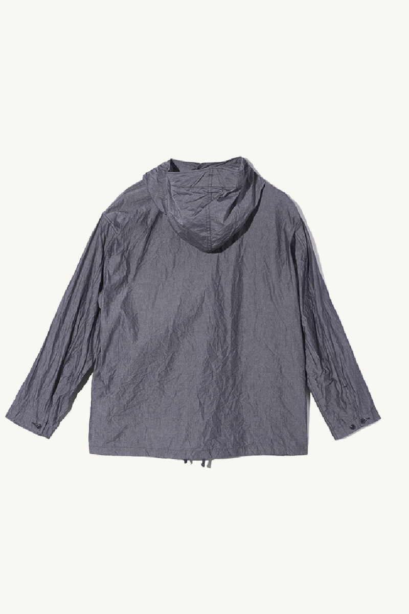 Il offre une coupe large non doublée, un ourlet droit avec cordon dissimulé, une capuche avec cordon coulissant et boutons, des poches latérales et poches plaquées poitrine, et des poignets boutonnés réglables.