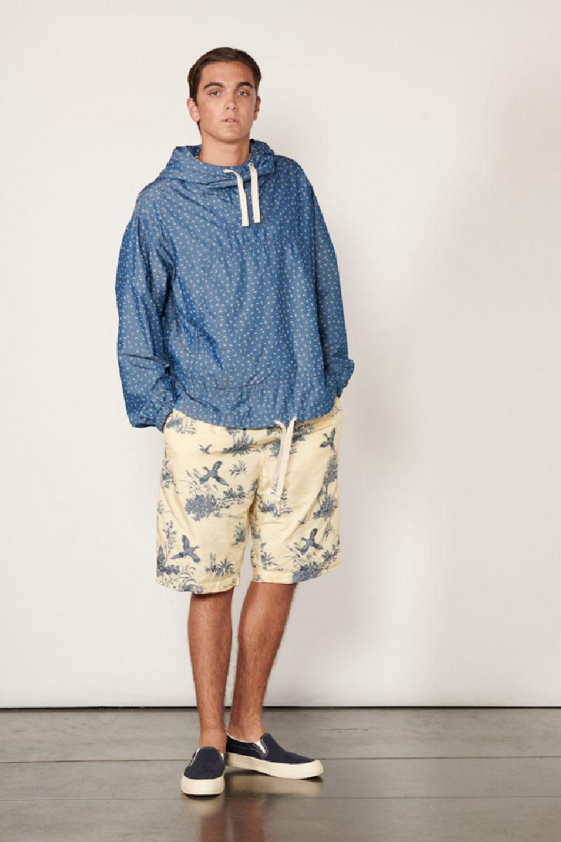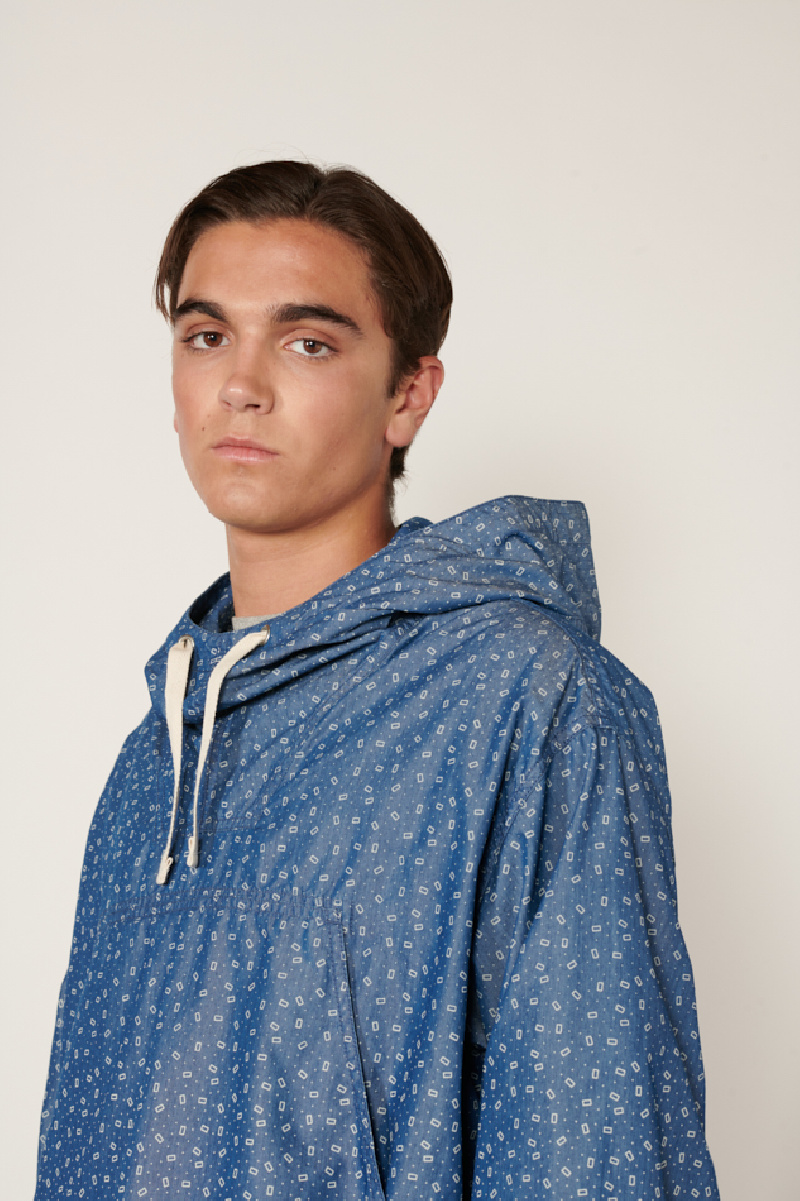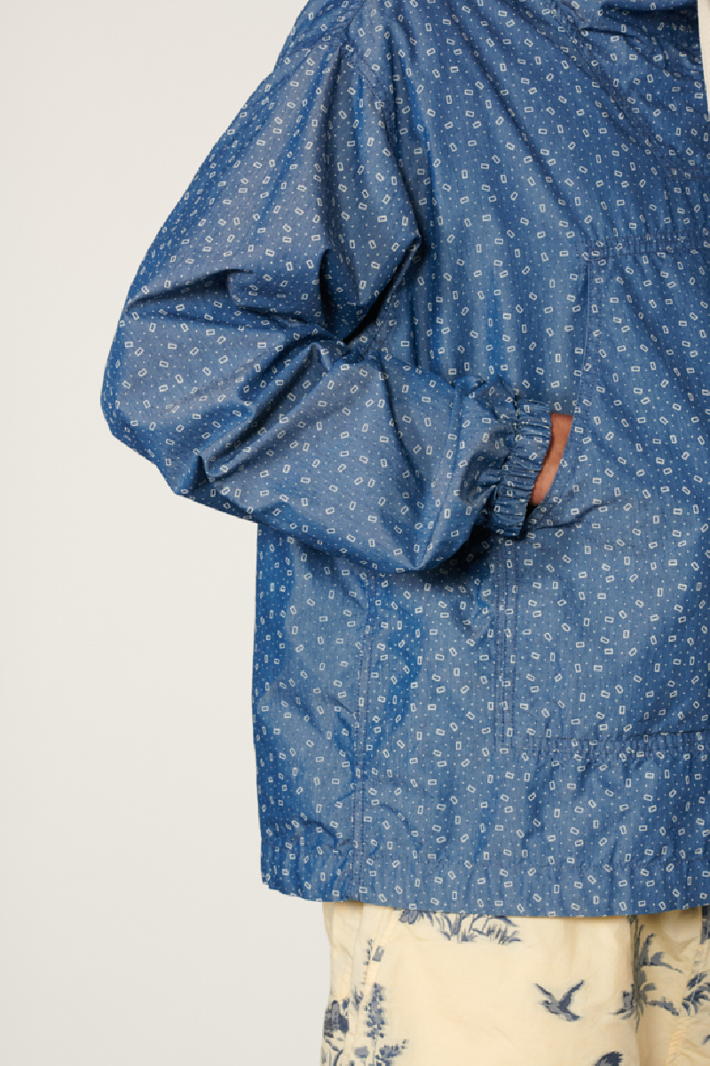 Veste à enfiler confectionnée en mélange de coton et de nylon avec une impression à motifs sur tissu bleu chambray, de la marque Beams +.