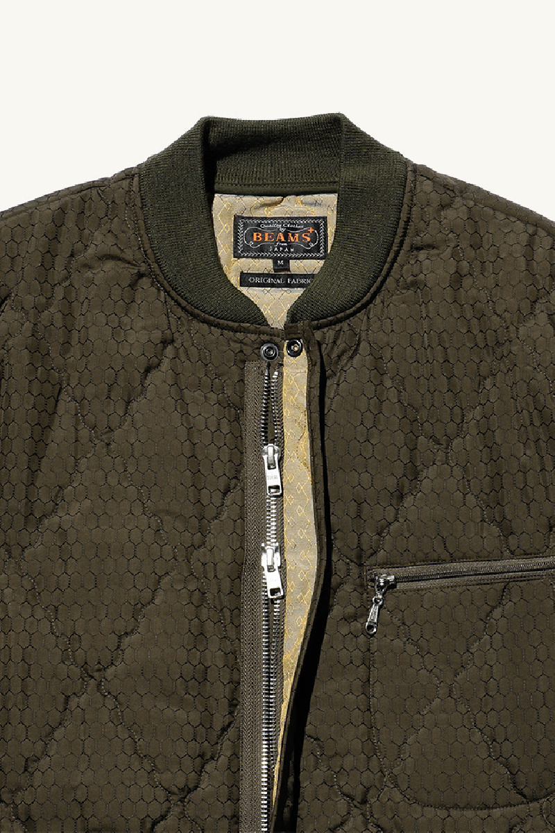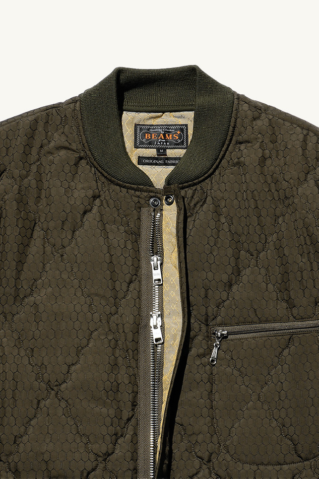 Blouson matelassé confectionné dans un jacquard de nylon léger au motif losanges, de la marque BEAMS PLUS.