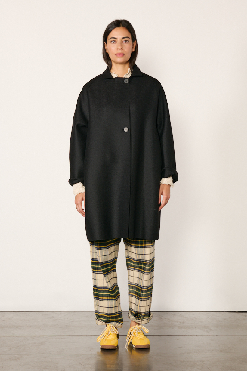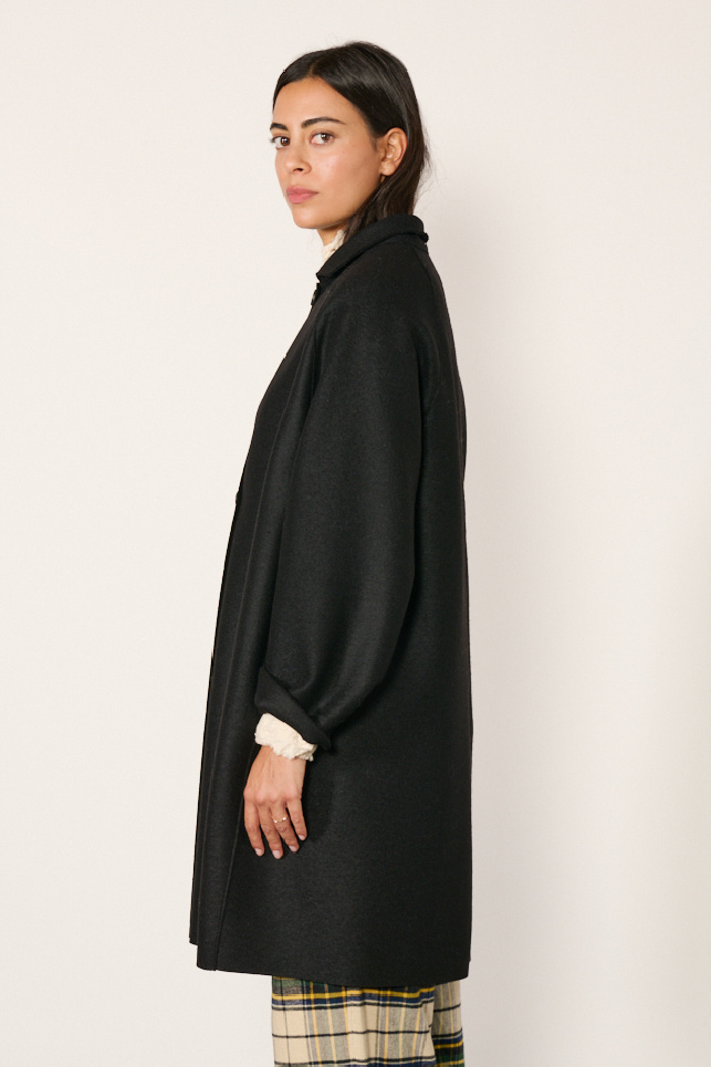 Manteau Raglan en laine noire de la marque Harris Wharf London.