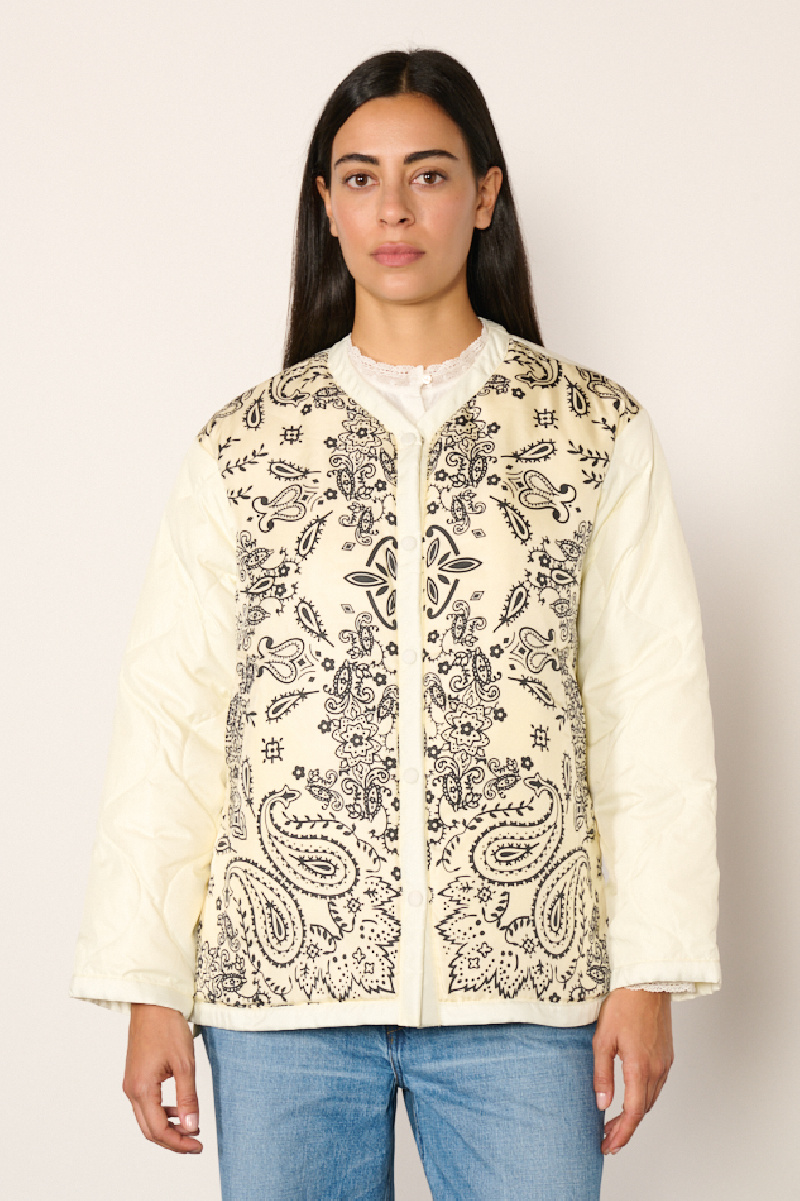 Veste matelassée reversible off white, rembourrée en duvet et plumes, de la marque Manipuri.