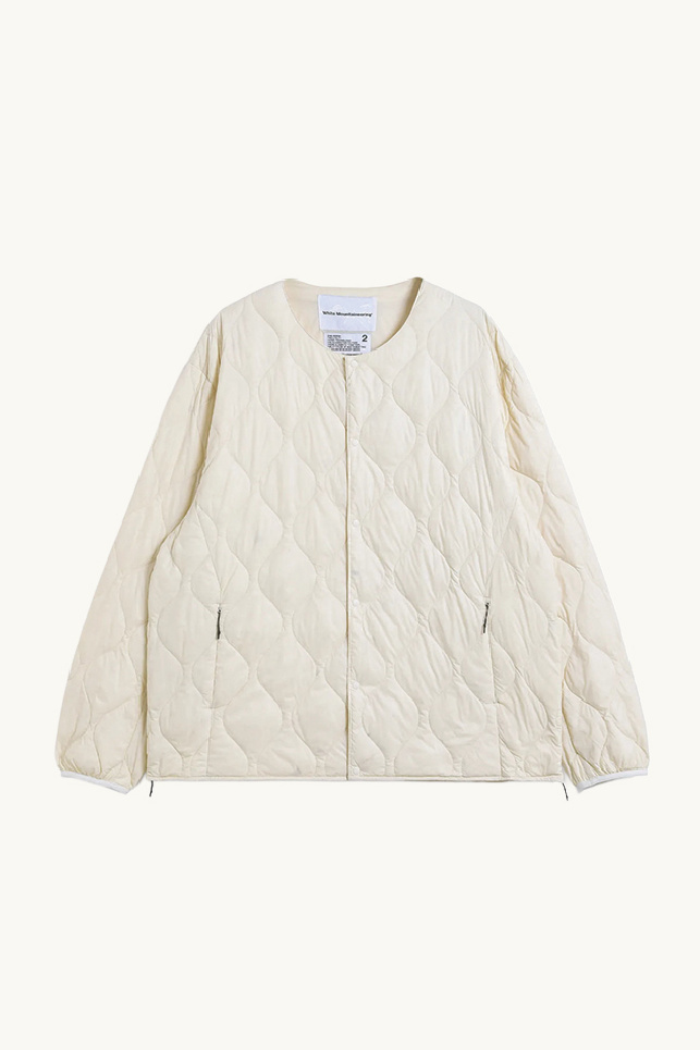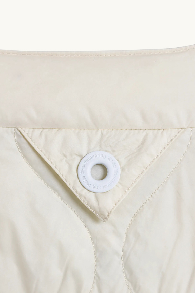 Doudoune fine matelassée beige de la marque TAION, en collaboration avec White Mountaineering.