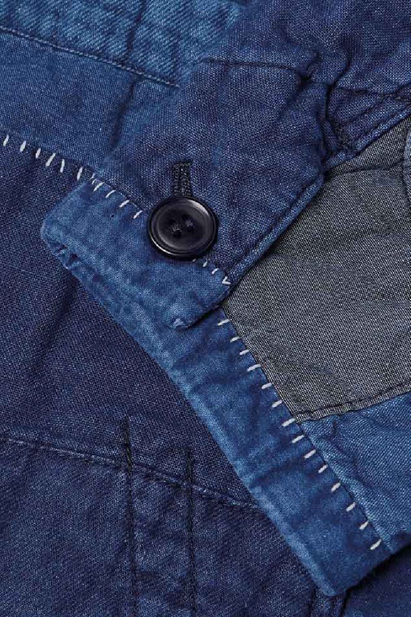 Veste Padded chaude s'inspire du Watairi, de couleur indigo, une tradition japonaise ancestrale. Elles sont confectionnées à partir de plusieurs couches de tissus indigo, incluant des flanelles aux textures variées et des nuances profondes, offrant une richesse visuelle qui évolue avec le temps. Doublées de molleton de polyester pour plus de confort, ces pièces rappellent la méthode traditionnelle où les kimonos étaient rehaussés de coton pour créer une ouate isolante, parfaite pour affronter le froid hivernal.