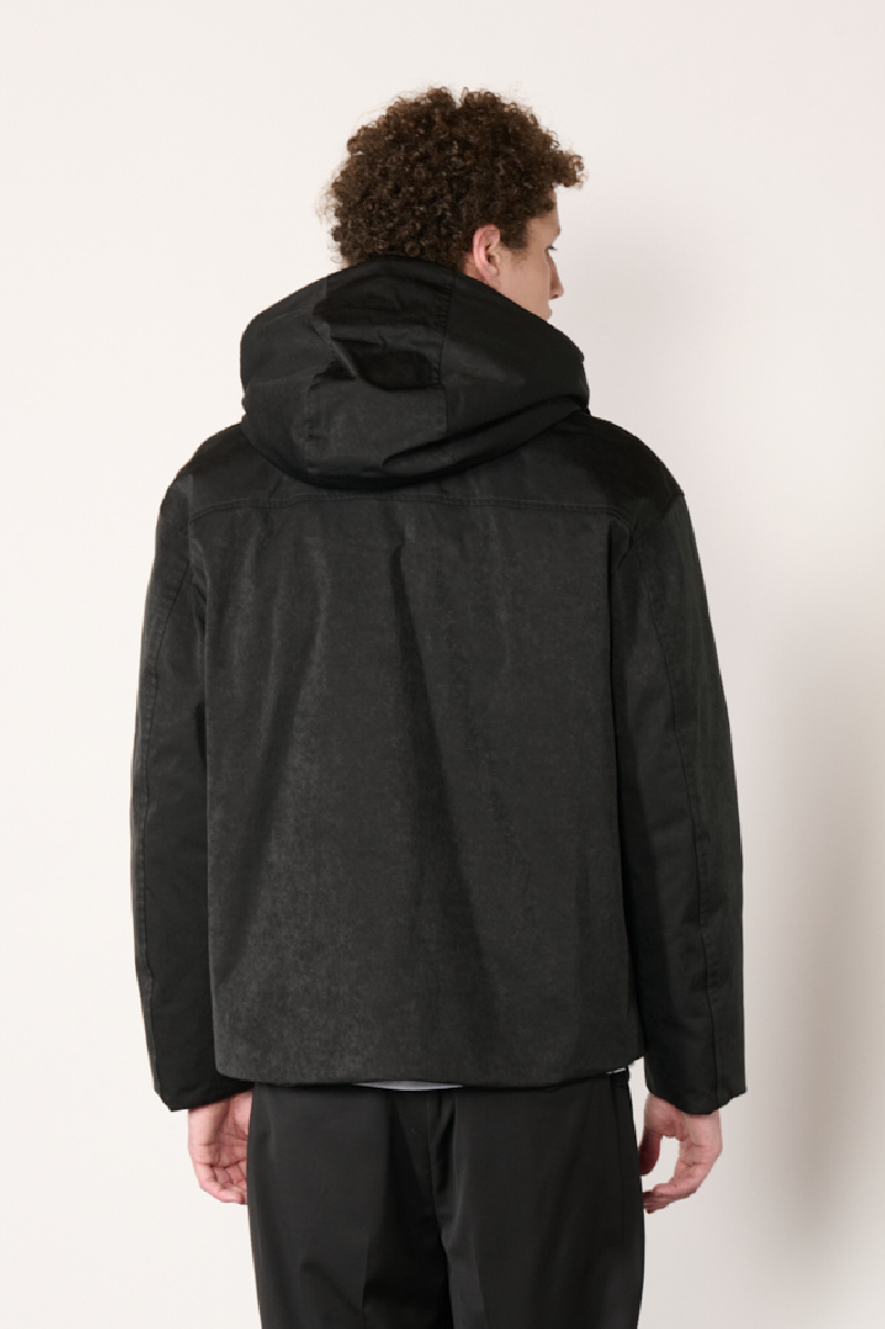 Doudoune Hub de couleur noire cirée, avec rembourrage en plume de canard, de la marque Ten C.