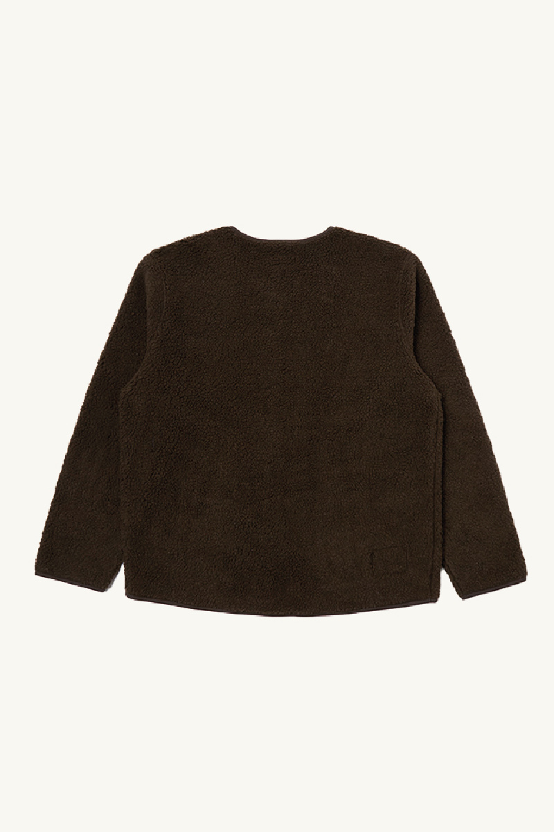 Veste en polaire brossée marron, effet peau de mouton, de la marque Universal Works.