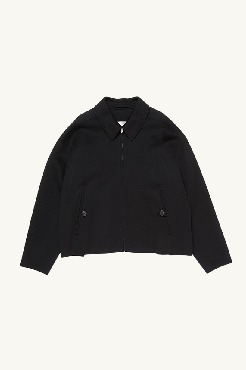 Veste courte confectionnée en laine et cachemire noir, avec une surface brossée douce, de la marque Acne Studios.
