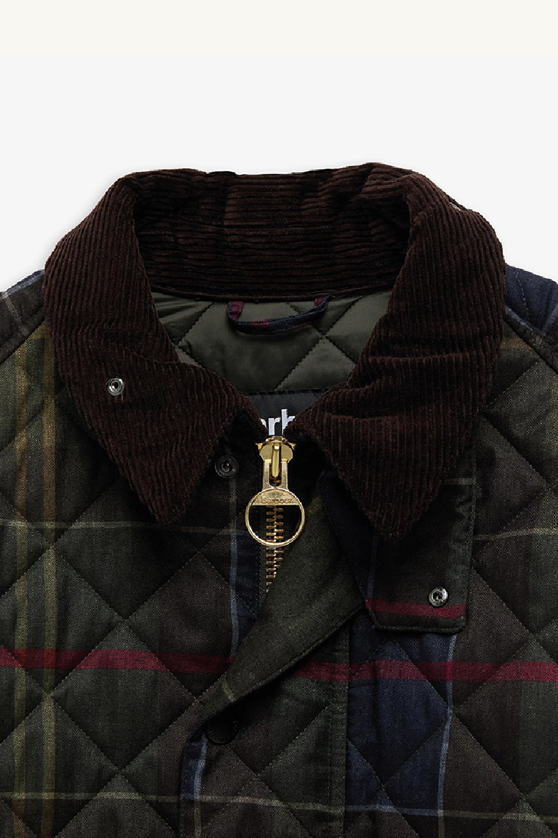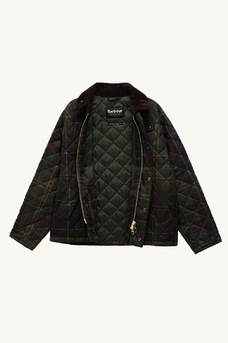 Avec son motif tartan intemporel, elle reprend les principales caractéristiques des vestes Barbour en proposant une longueur droite raccourcie, avec deux poches chauffe-mains et une jupe pare-tempête intérieure.