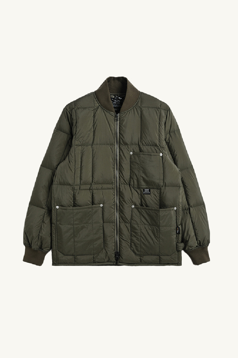 Doudoune Work matelassée olive avec un rembourrage en duvet 800FP et plume, de la marque Taion.