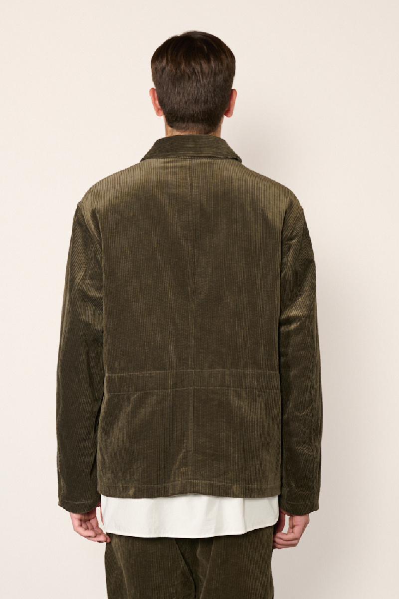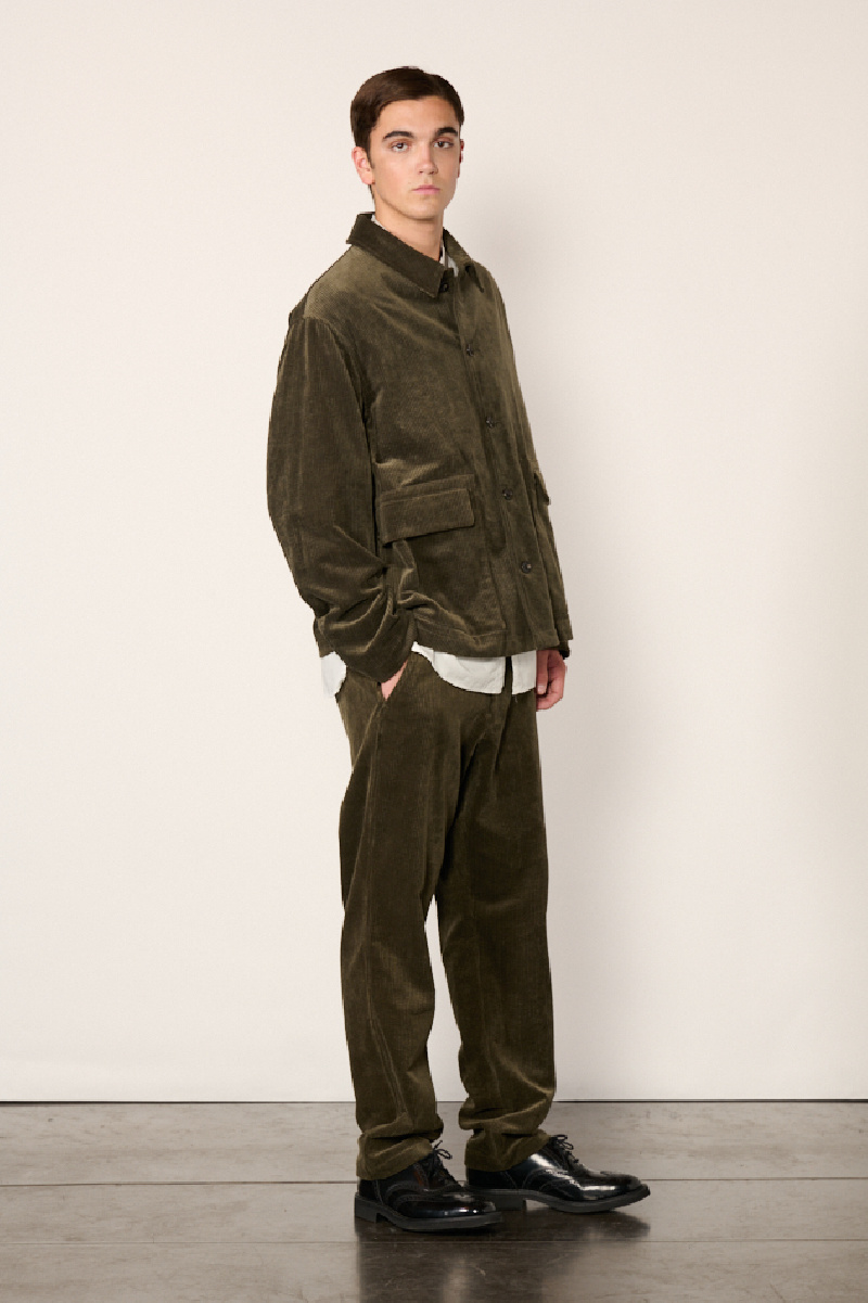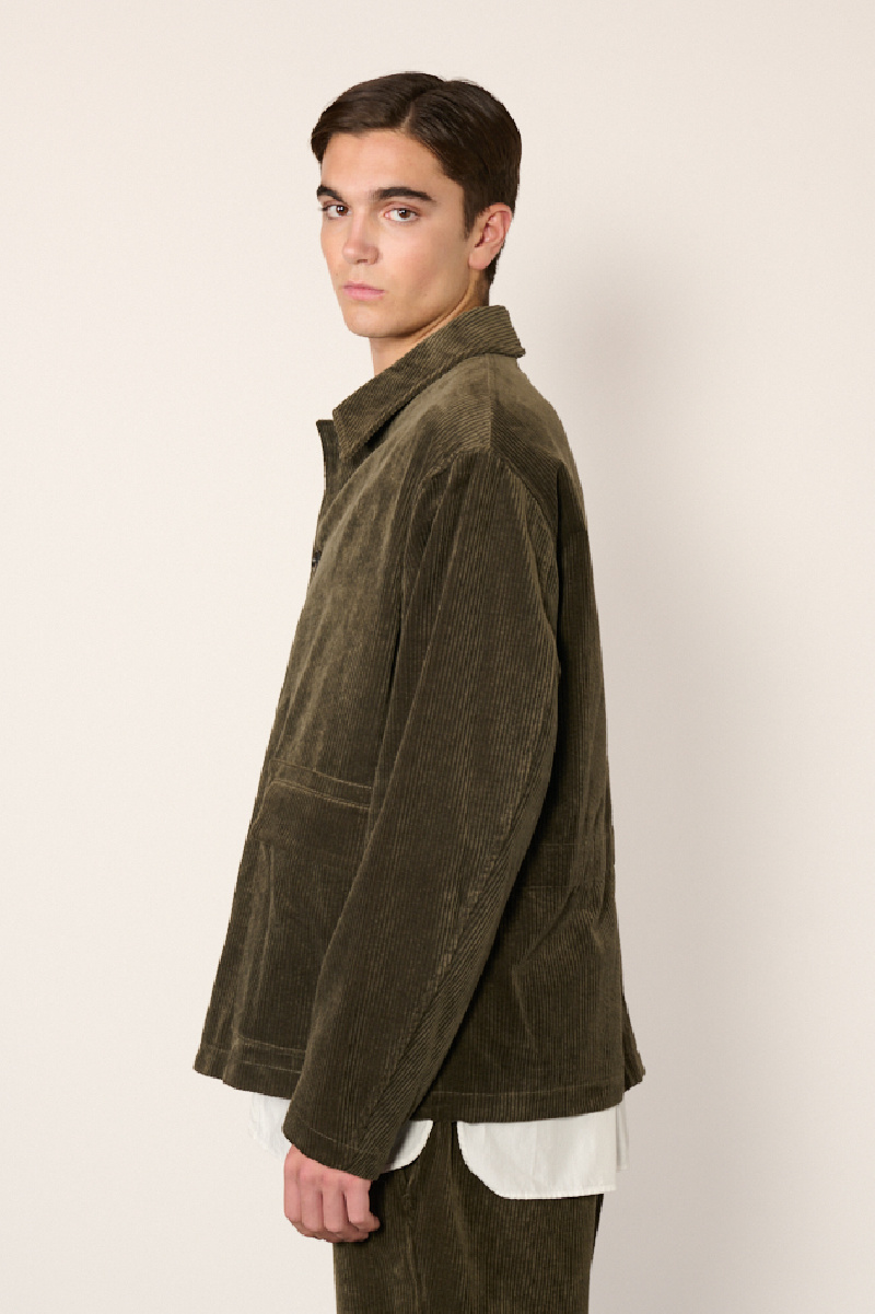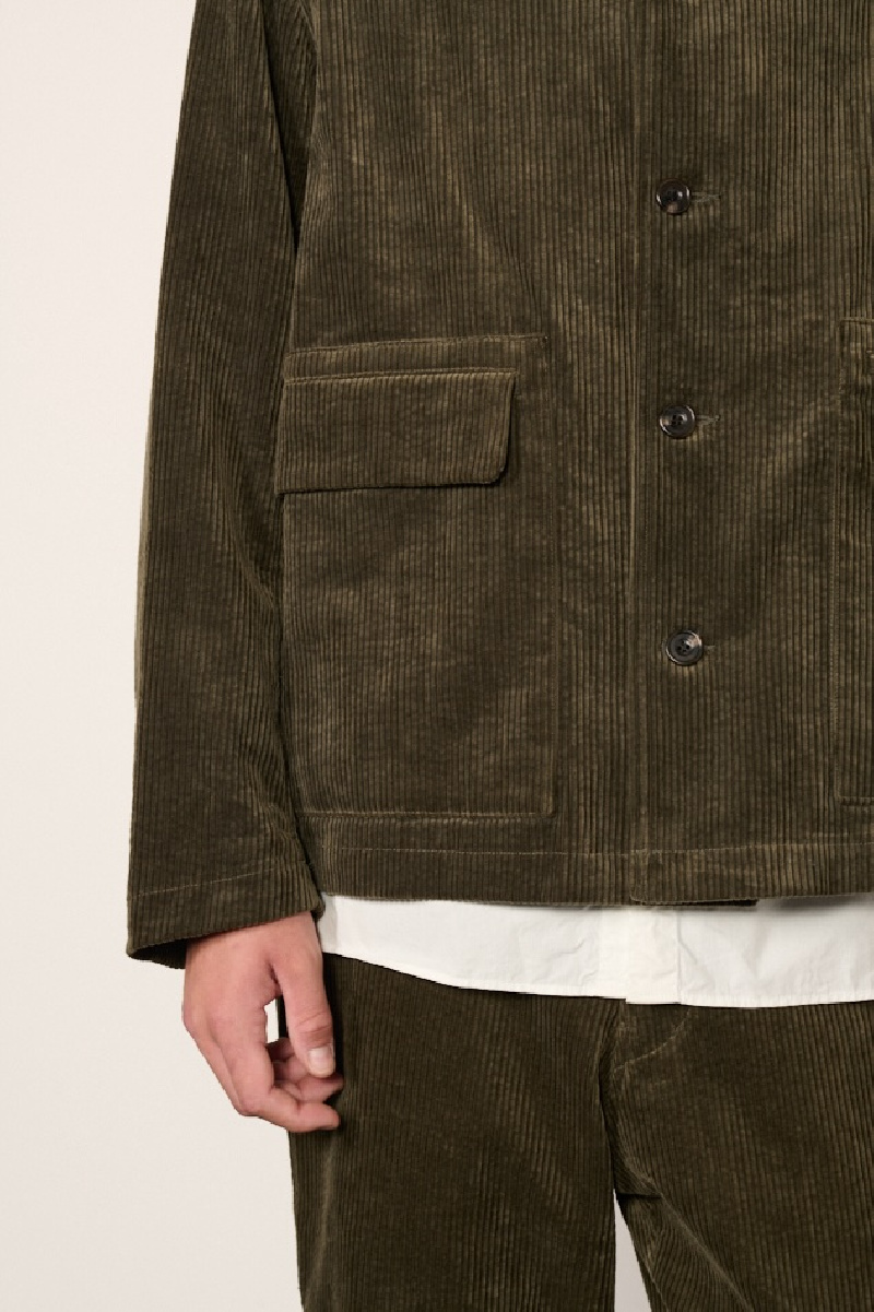 Veste courte confectionnée en velours de coton côtelé olive, entièrement doublée, de la marque Sage de Cret.