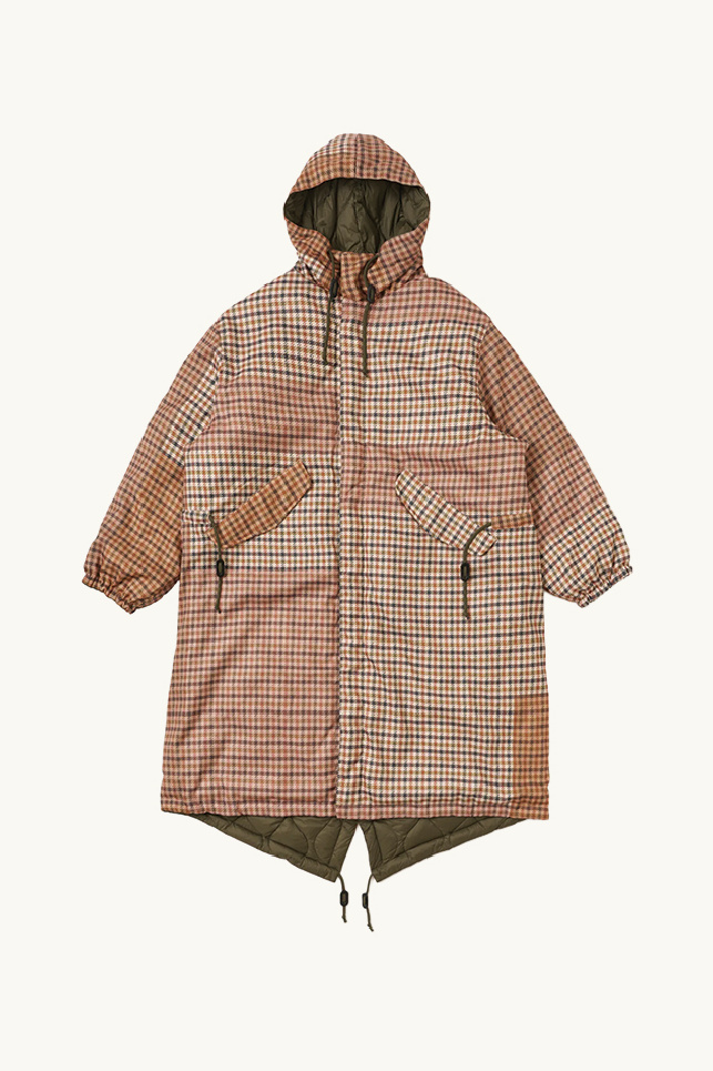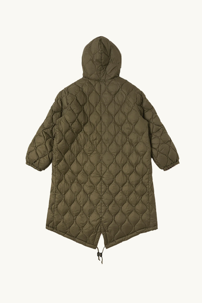 Parka matelassée et reversible olive, issue de la collaboration entre Taion et Universal Works.