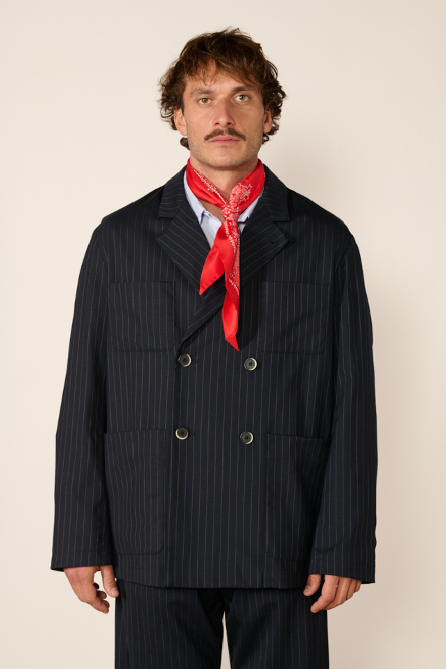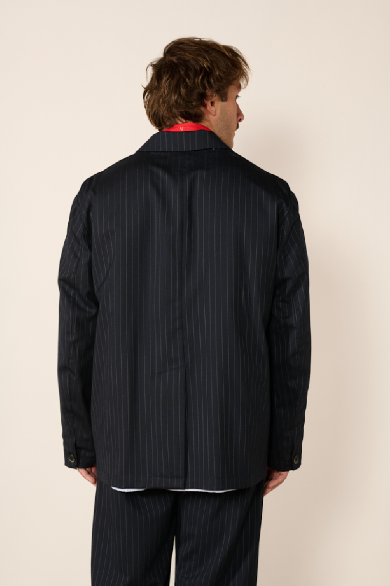 Veste Viandon Fulgor à fines rayures, confectionnée en laine bleu marine, de la marque Barena.