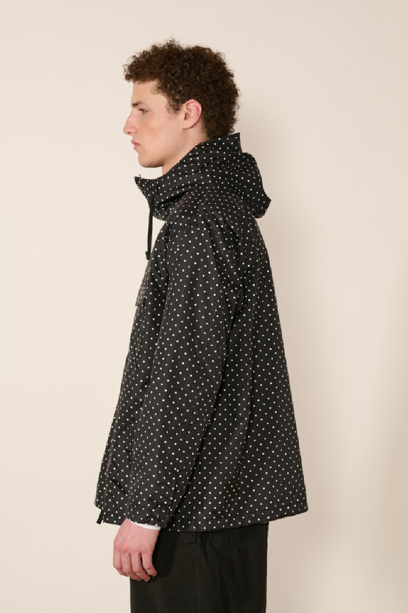Veste légère noire à imprimé pois, confectionnée en nylon, signée Engineered Garments.