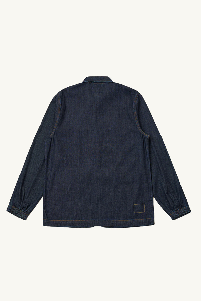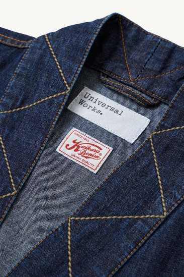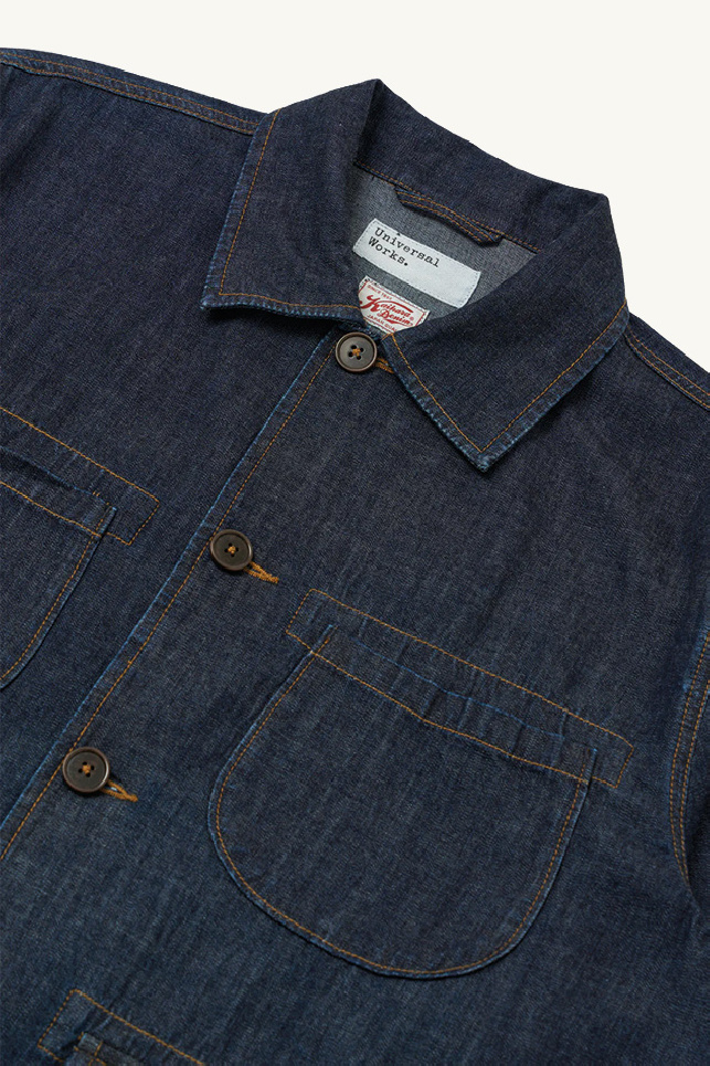 Veste de travail confectionnée en denim Indigo Kaihara fluide, de la marque Universal Works.