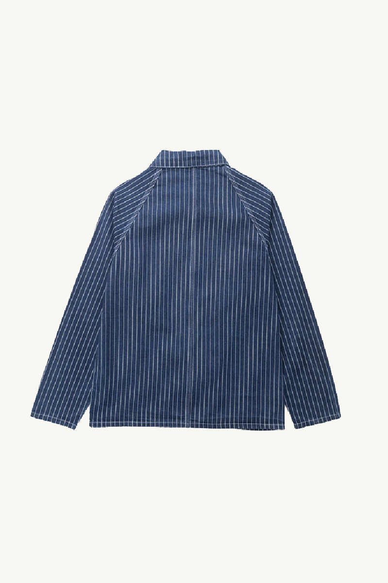 Veste 2.0 confectionnée en denim indigo léger à rayures blanches, de la marque Service Works.